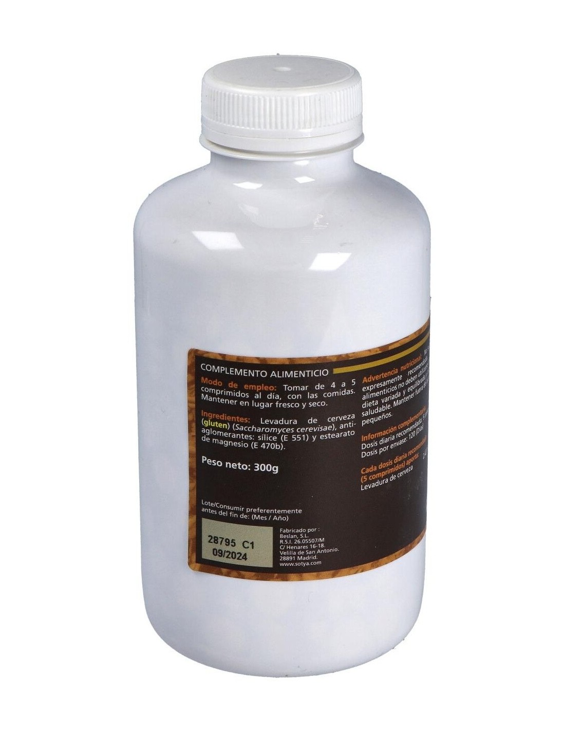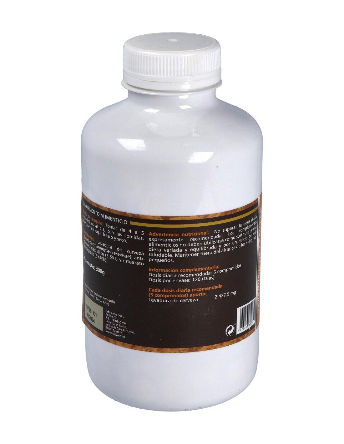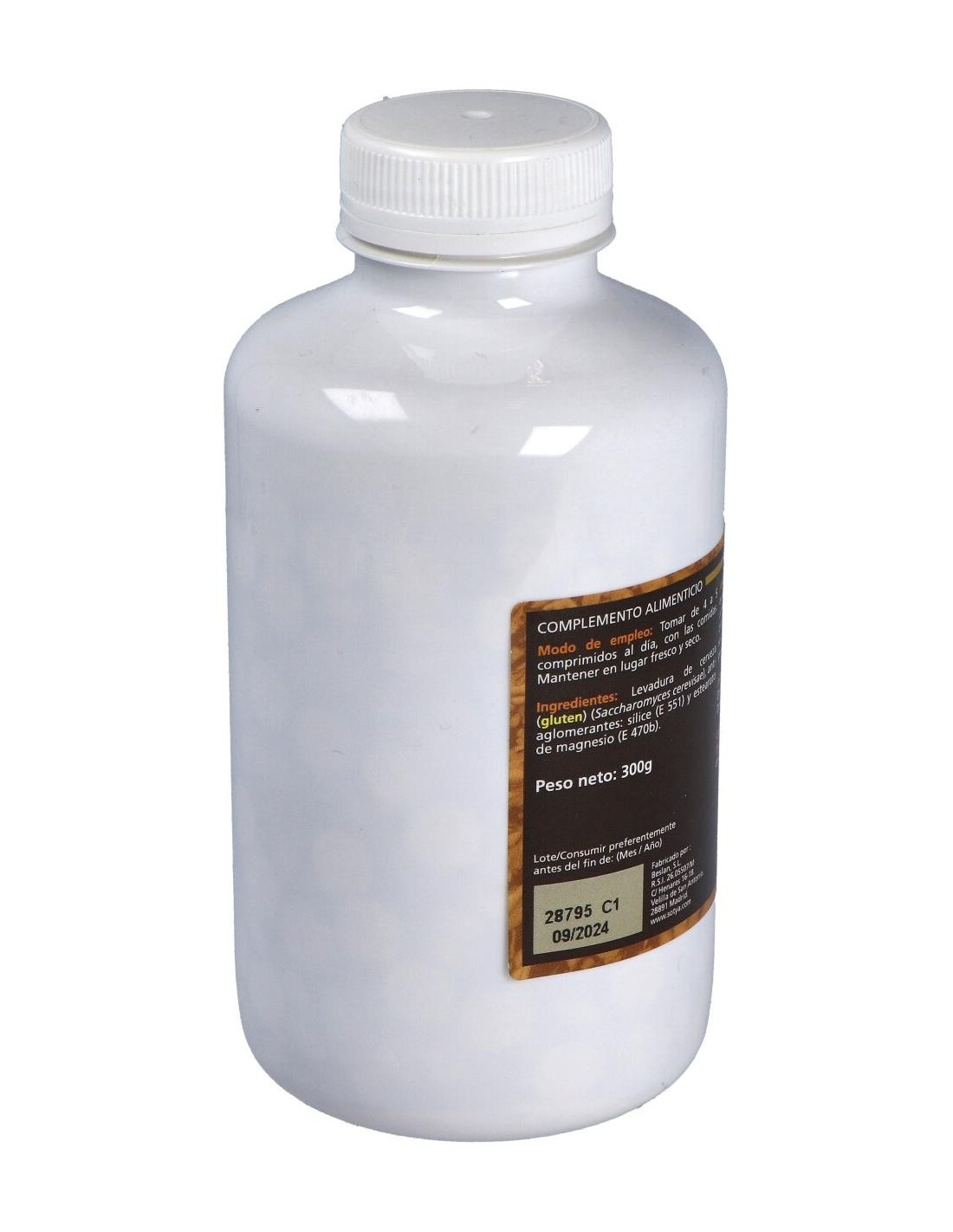 - Cada comprimido contiene 500 mg de levadura de cerveza, facilitando una ingesta controlada y práctica.