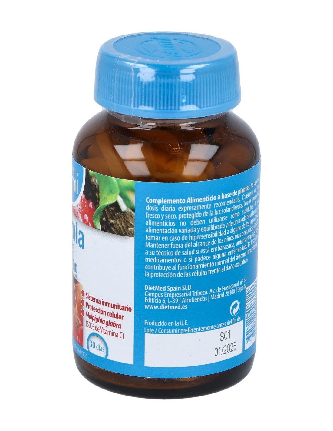 Acerola 1000Mg. 60Comp. de Dietmed es un complemento alimenticio diseñado para personas que buscan una fuente natural de vitamina C en su rutina diaria. Este producto es adecuado para quienes desean mantener un aporte constante de este nutriente esencial a través de una fórmula práctica y dosificada.