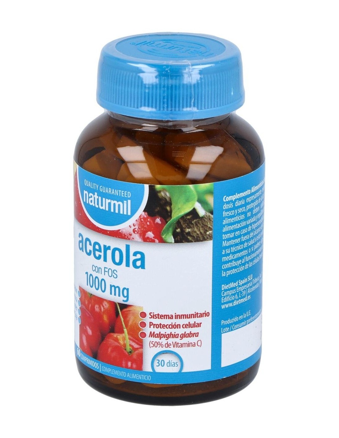 Acerola 1000Mg. 60Comp. de Dietmed proporciona una manera práctica y natural de incorporar vitamina C en la alimentación diaria, contribuyendo a mantener un equilibrio nutricional adecuado.