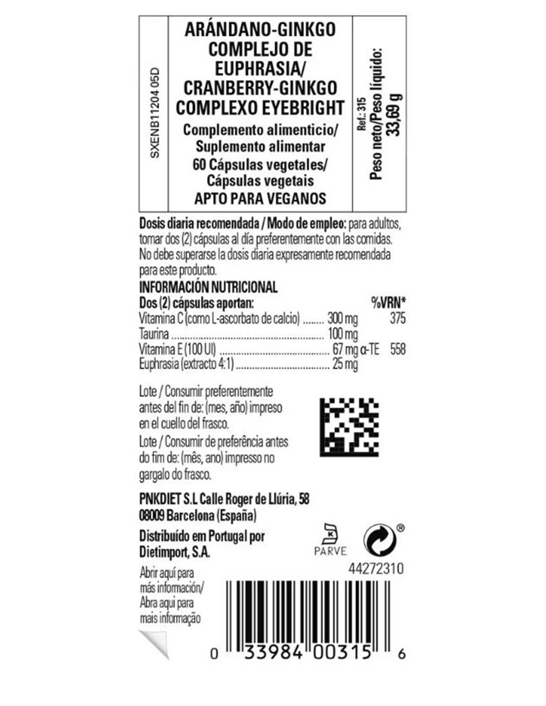 Bilberry Ginkgo Eyebright Complex está diseñado para apoyar la normal función visual, gracias a su aporte de vitamina A y una combinación de antioxidantes que incluyen vitaminas C y E para ayudar a neutralizar los radicales libres en las células. Esta fórmula también contiene arándano con antocianósidos naturales y otros extractos de hierbas como Ginkgo Biloba y Eufrasia.