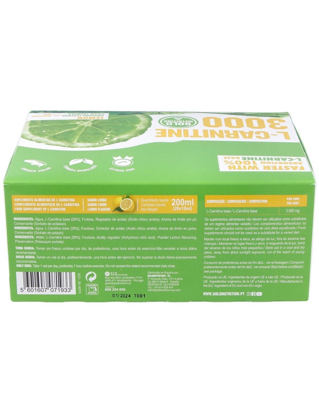 L-Carnitina 3000Mg. Sabor Limon 20Viales de Gold Nutrition