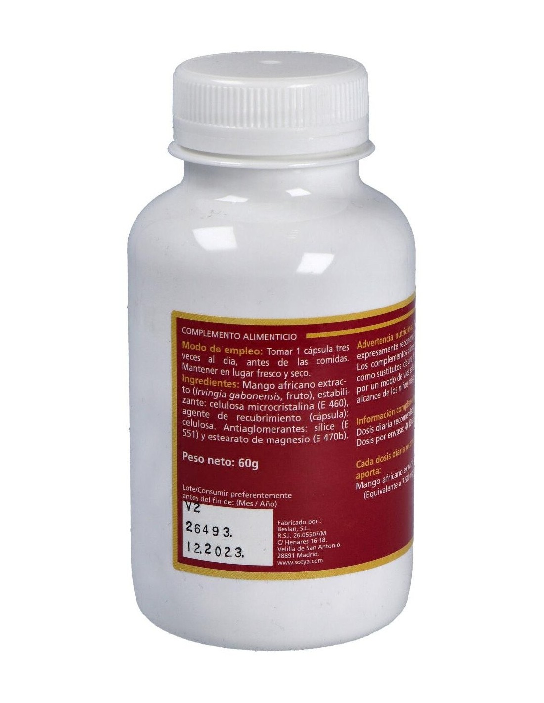 Mango Africano 650Mg Caps. Veg 120U de Sotya