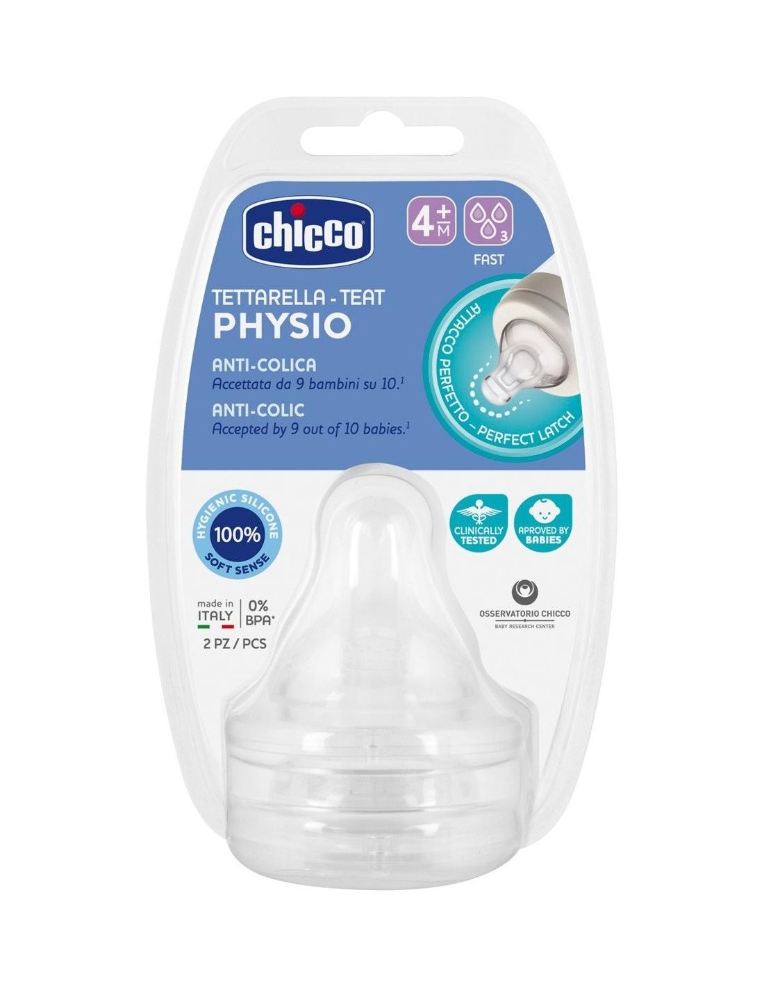 Tetina Physio 4M+ Fl.Medio Sili 2Ud de Chicco