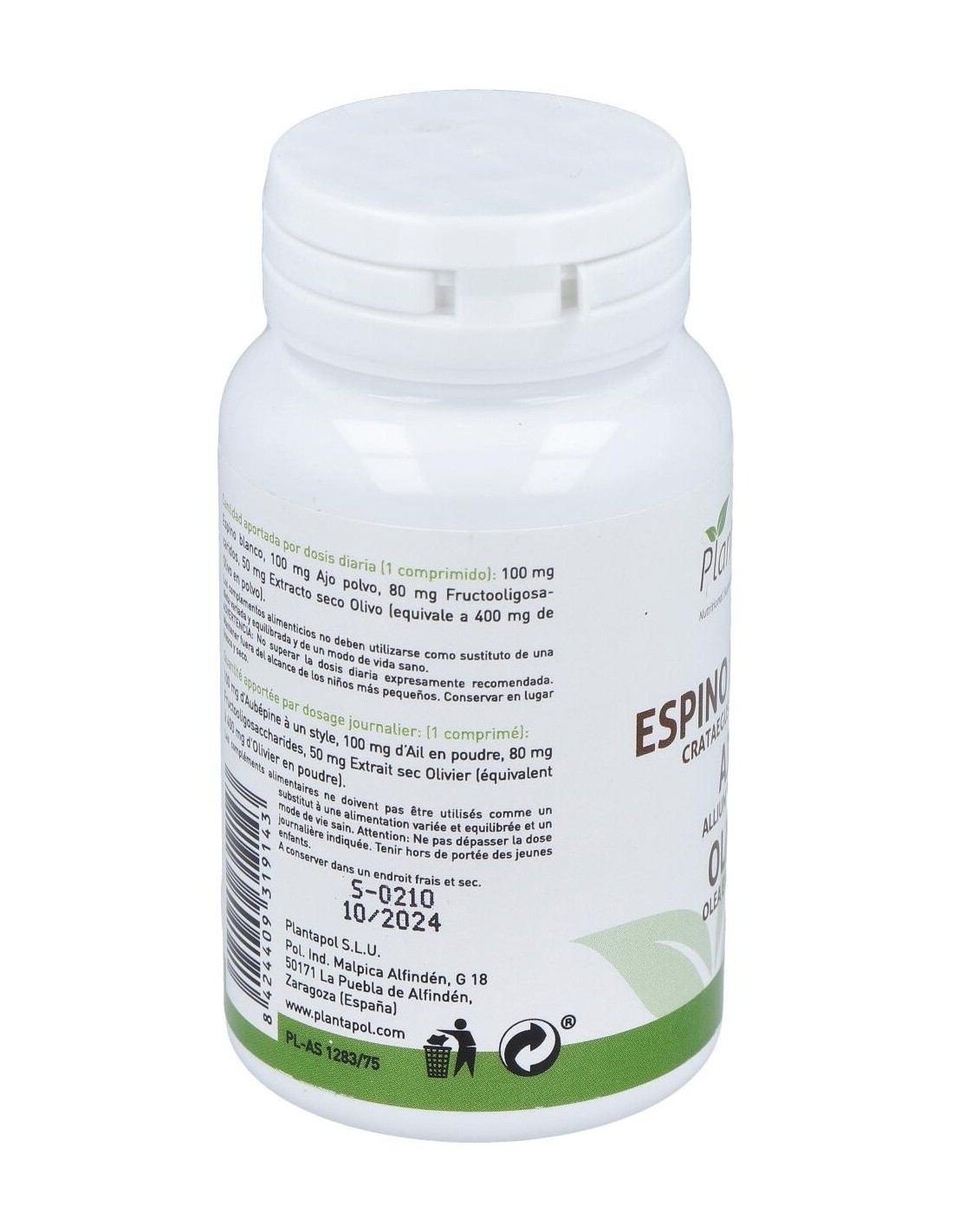 Espino Blanco, Ajo, Olivo (100 Comprimidos 550 Mg) de Plantapol