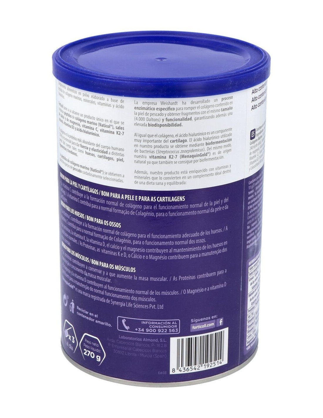 Colageno Bioactivo Marino 270Gr. Forticoll de Almond
