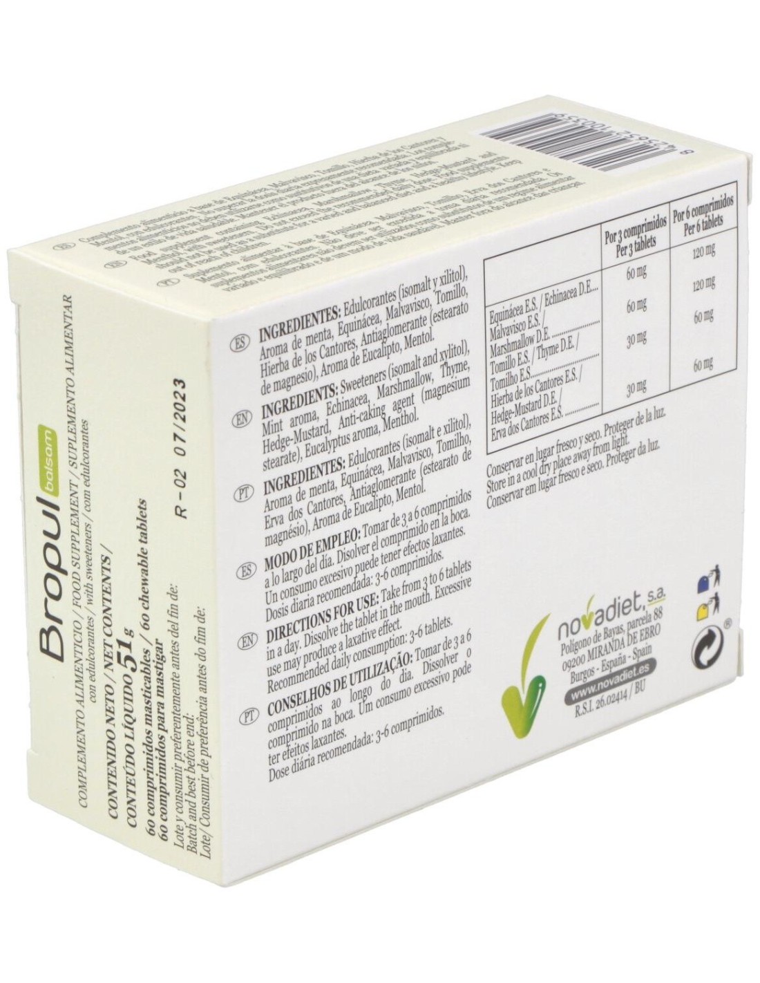 Bropul Balsam Envase de 60 comprimidos masticables. de Novadiet