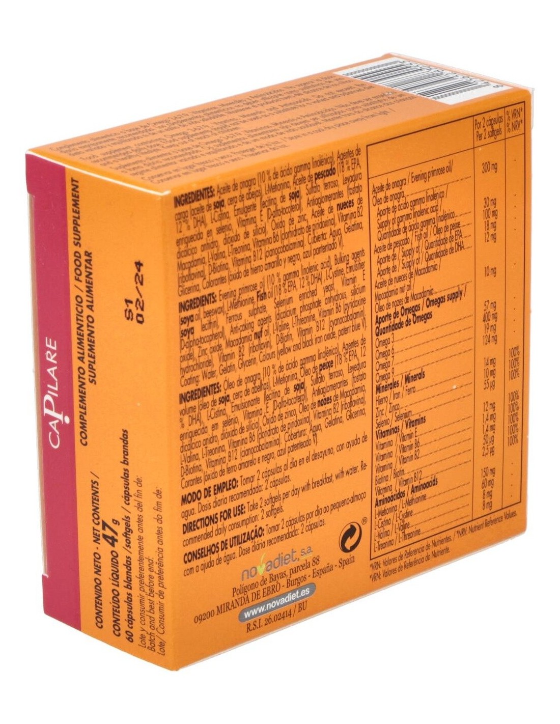 Capilare Envase de 60 cápsulas blandas. de Novadiet