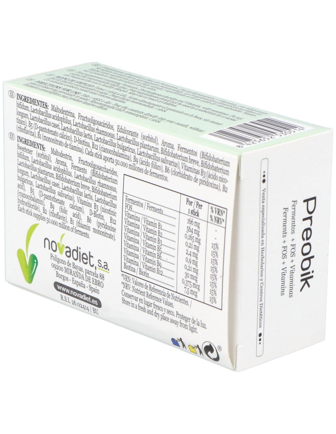 Preobik Envase de 10 sticks monodosis de 2 g. de Novadiet