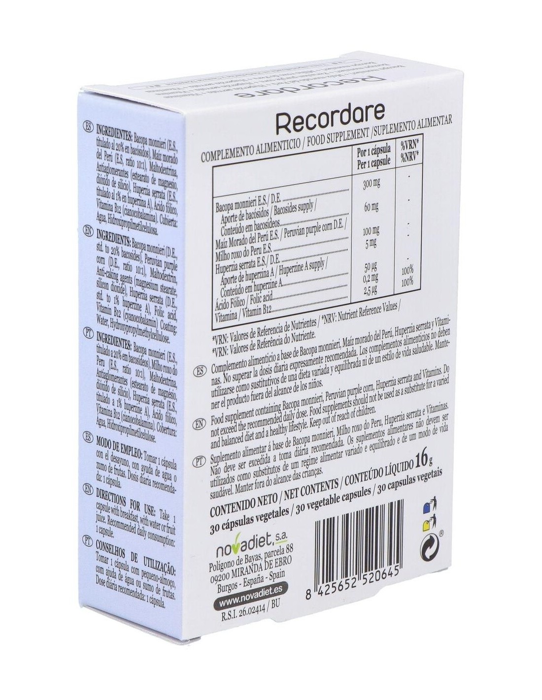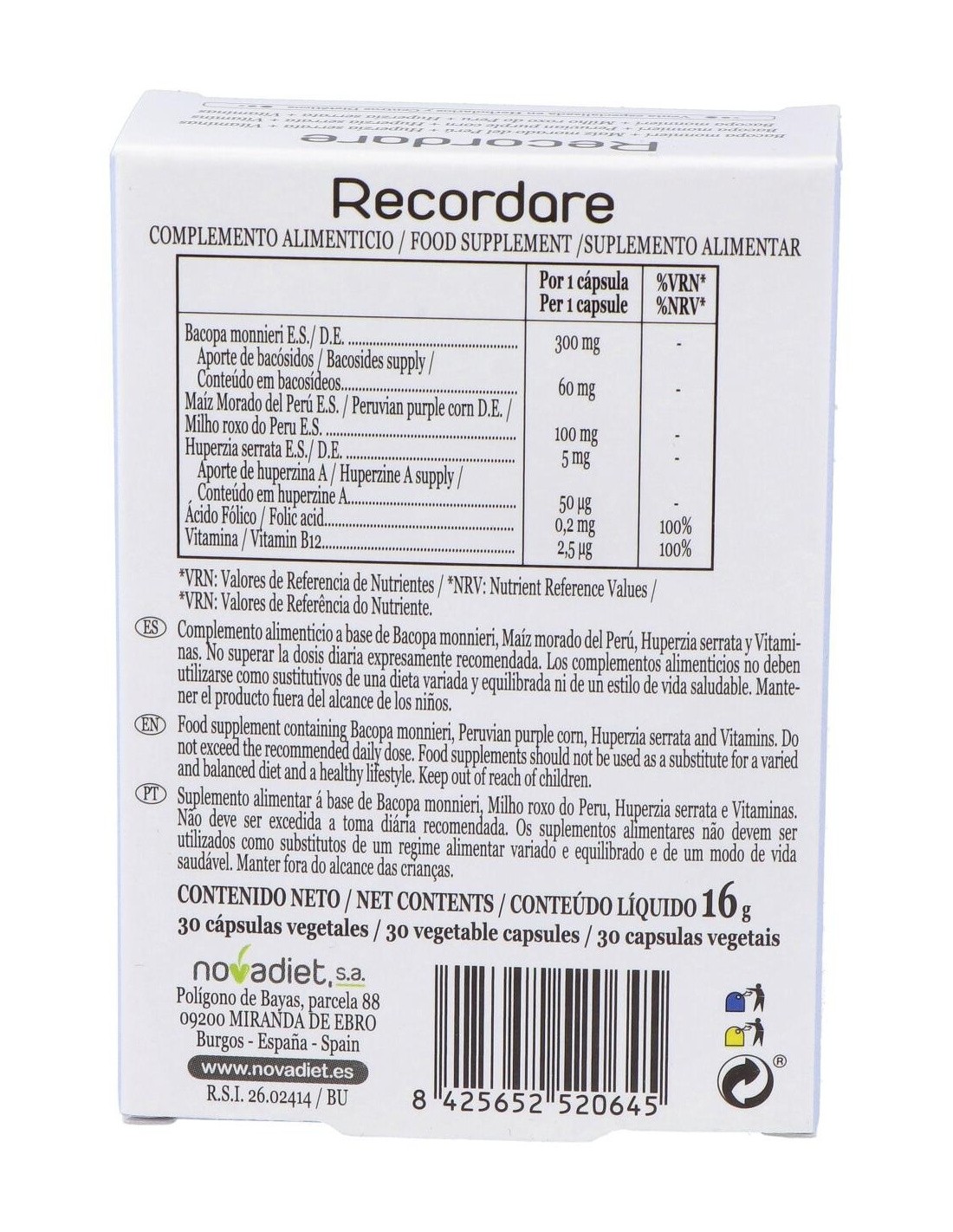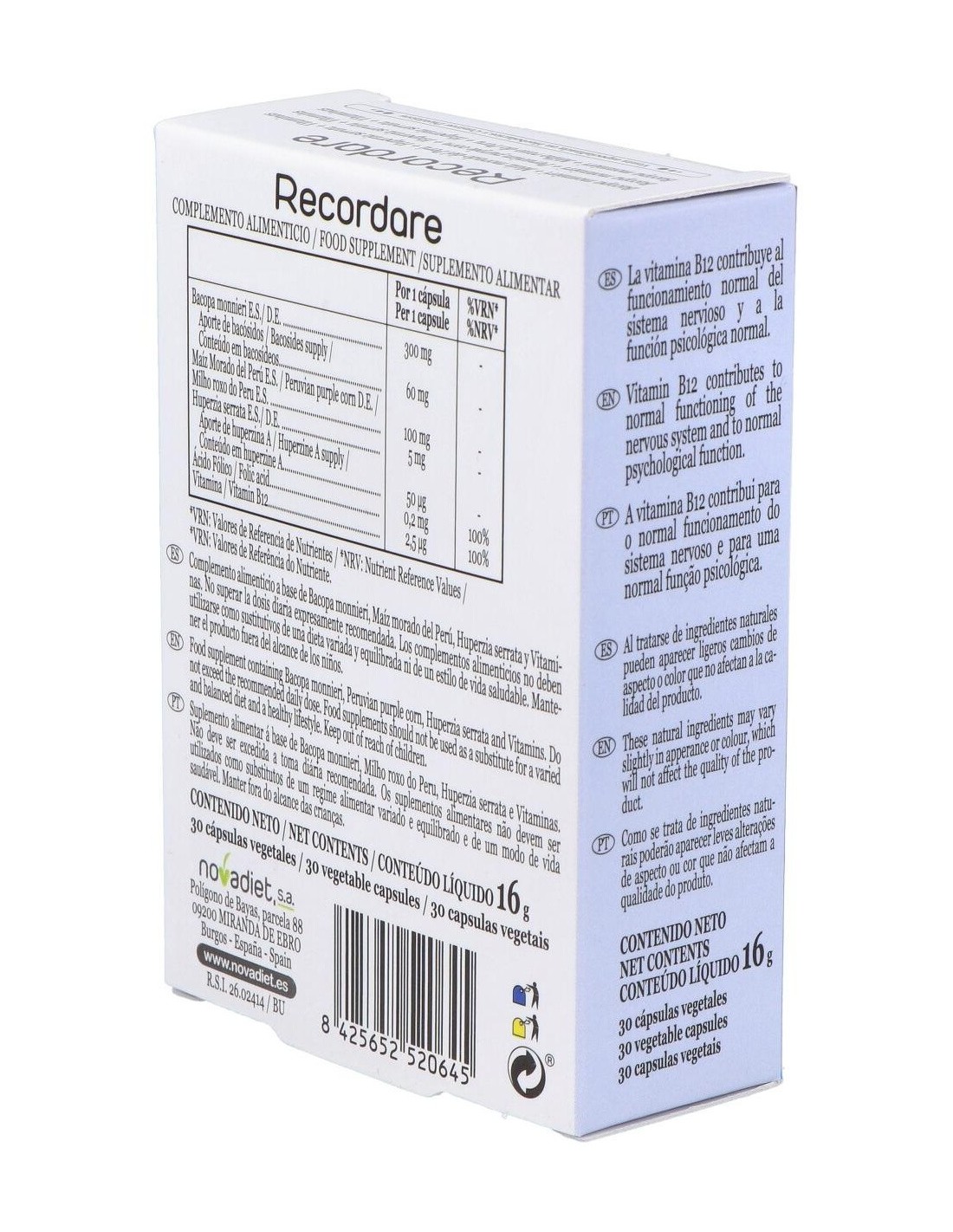 Recordare Envase de 30 cápsulas vegetales. de Novadiet