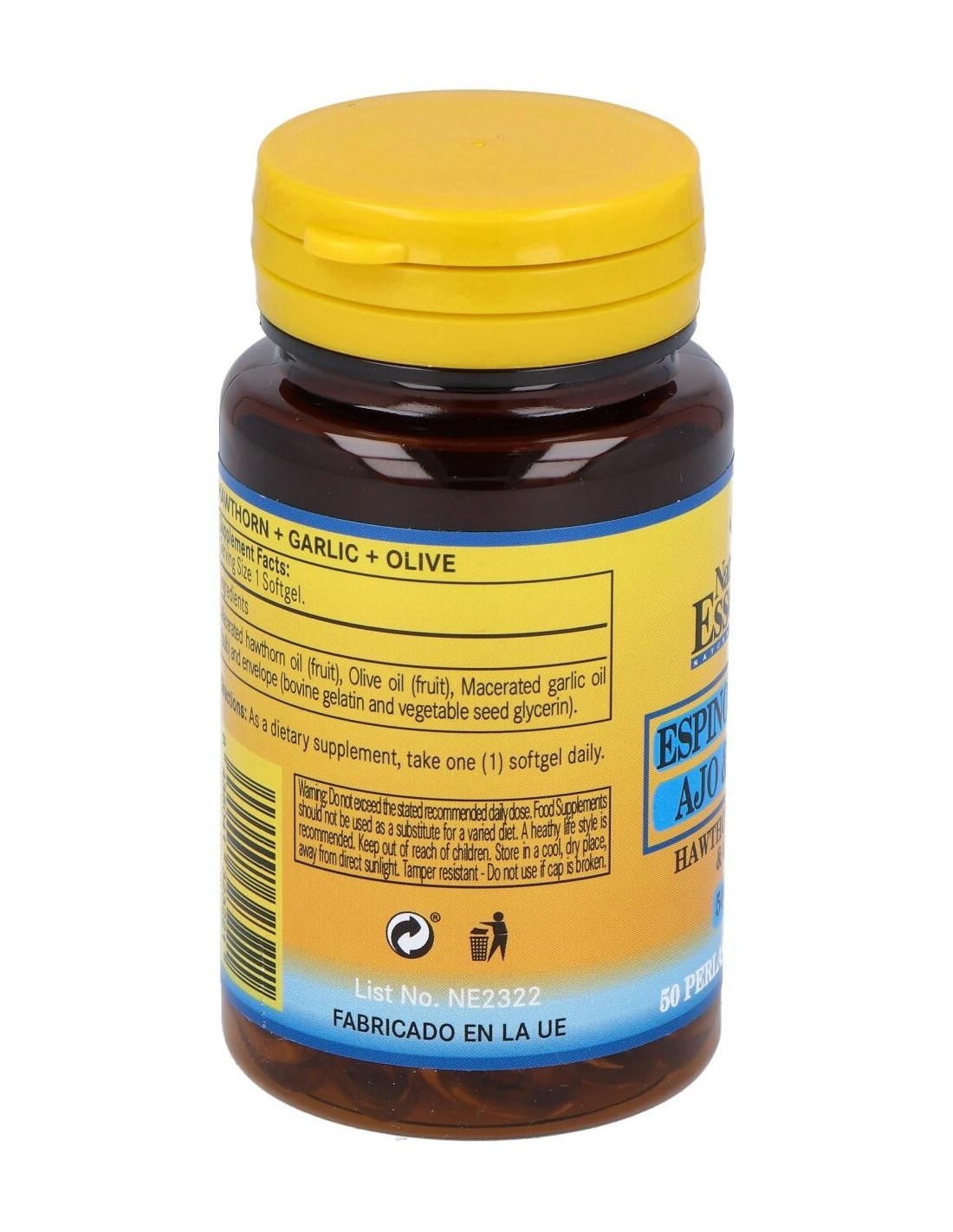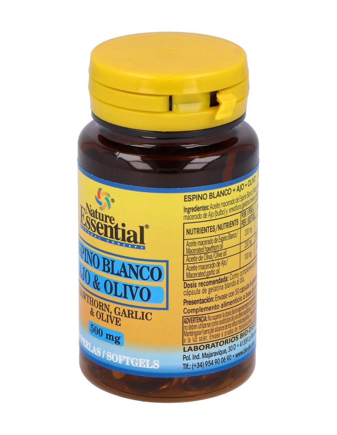 Espino Blanco + Ajo +Olivo 500Mg. 50Perlas de Nature Essential