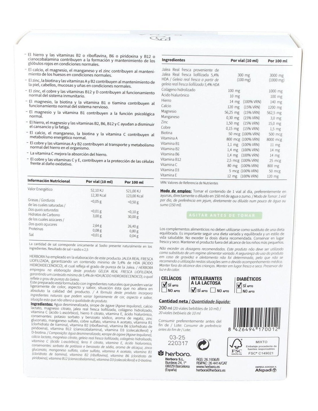 Dietética Natural Jalea Real Fresca (1.000 Mg) 20 Amp. de Intersa INTERSA 8413568020786 24,95 € Adicionar ao carrinho