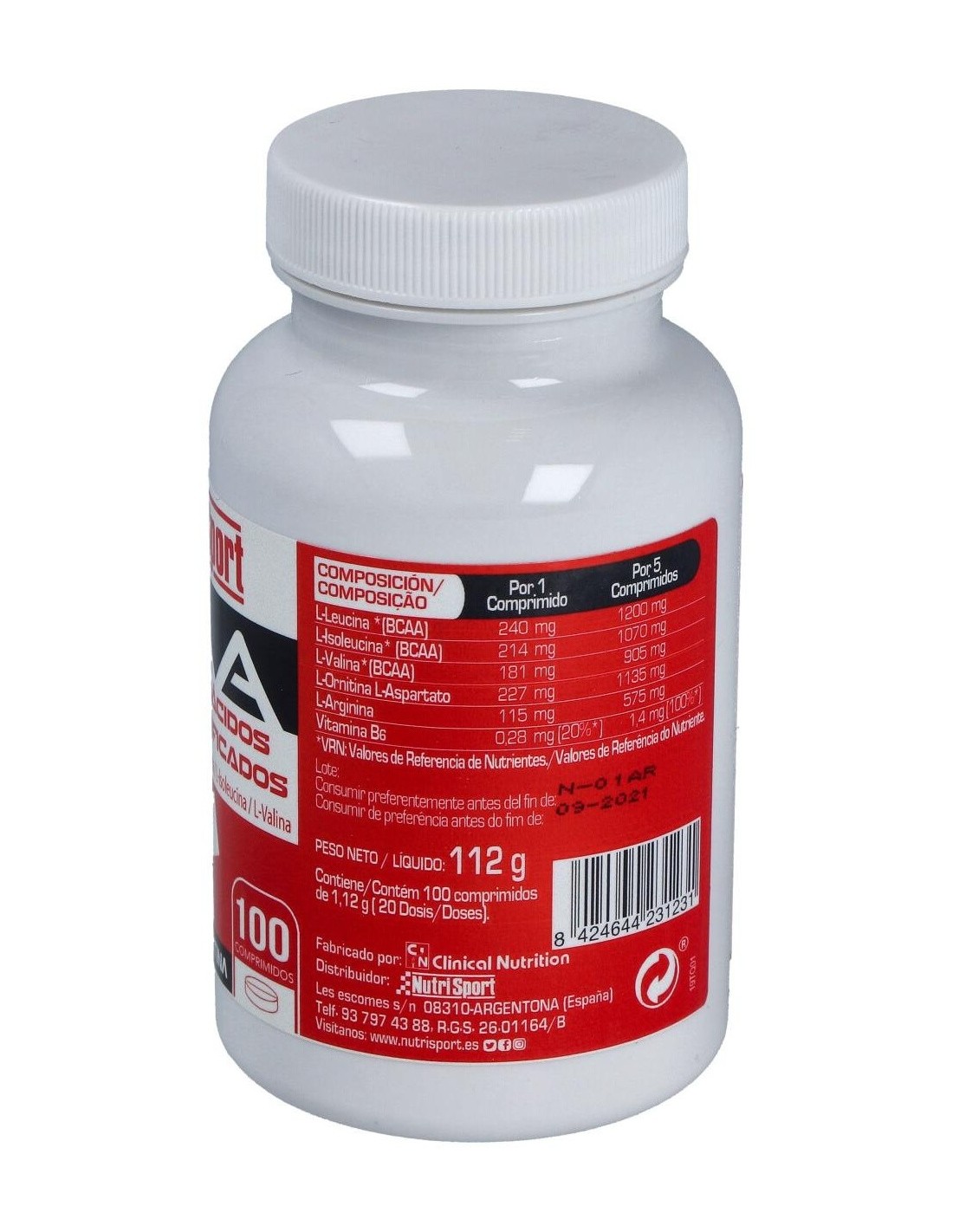 Aminoacidos Ramificados 1Gr Bcaa 100Comp de Nutrisport