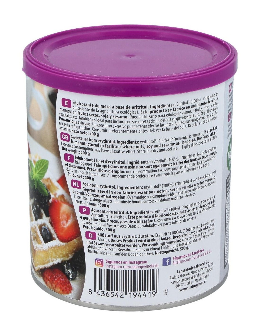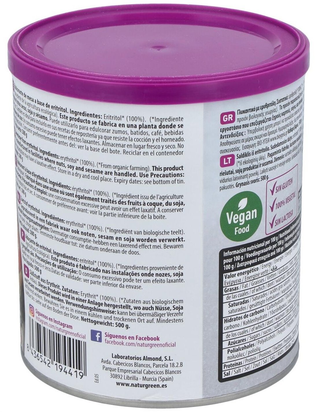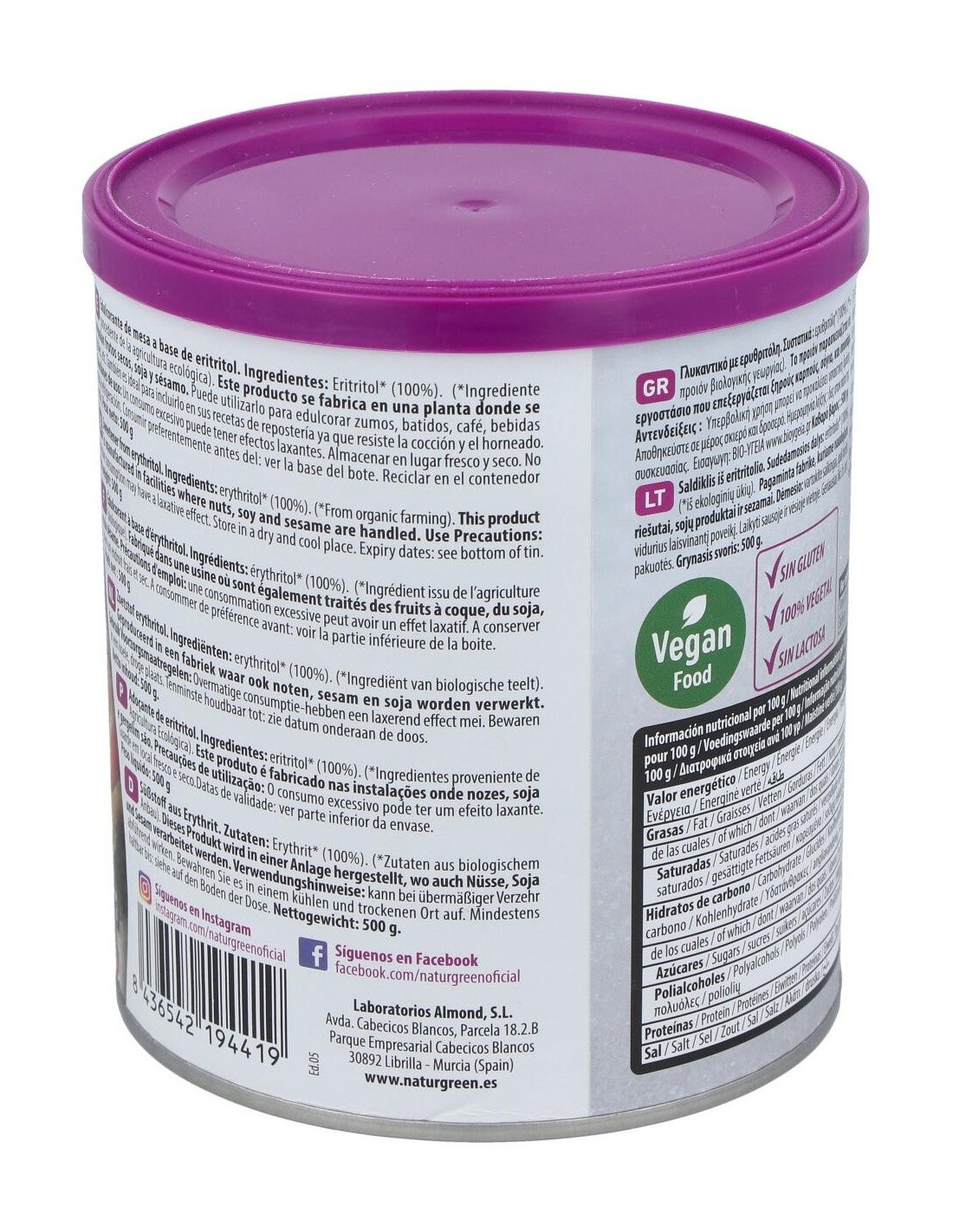 Eritritol Endulzante 500Gr. Bio de Naturgreen