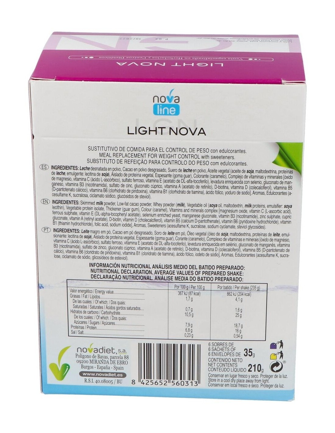 Light Nova Chocolate Envase de 6 sobres de 35 g. de Novadiet