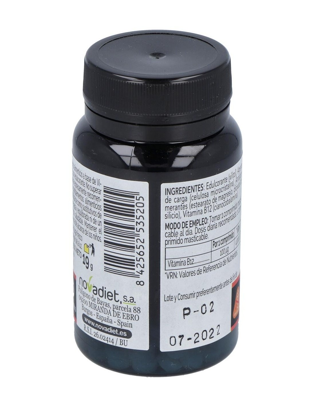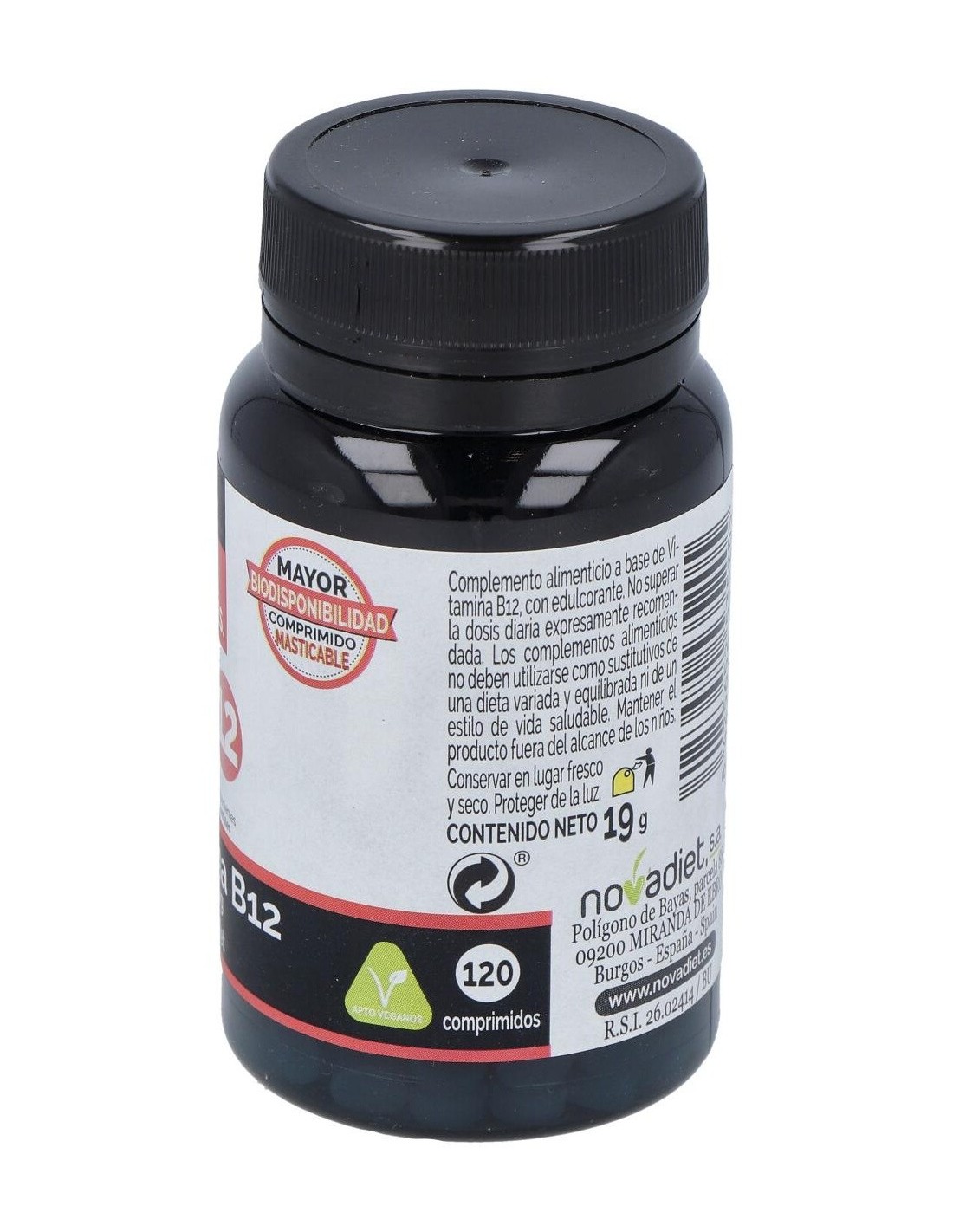 Vitamina B12 100 Mcg Envase de 120 comprimidos masticables. de Novadiet