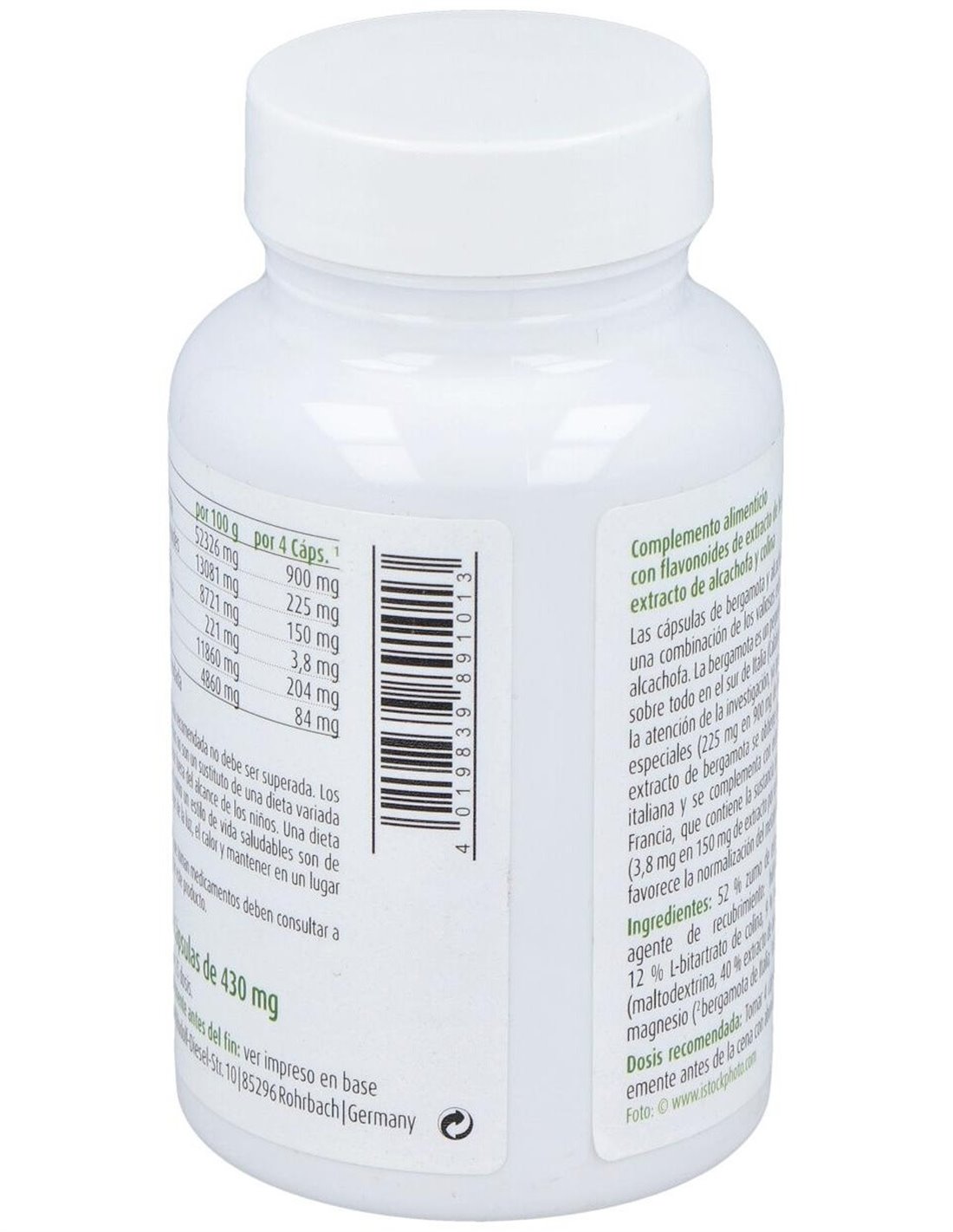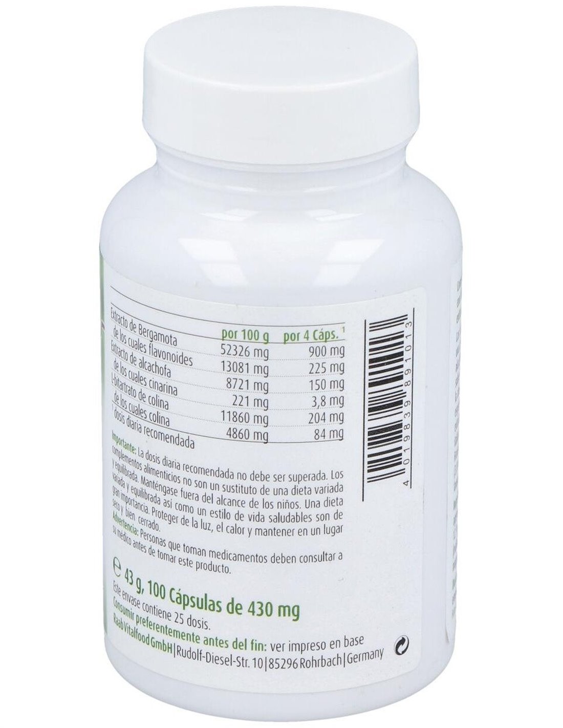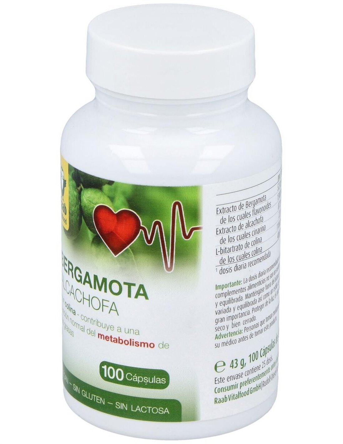 Bergamota y Alcachofa cápsulas 430mg, bote 100ud de Raab Vitalfood