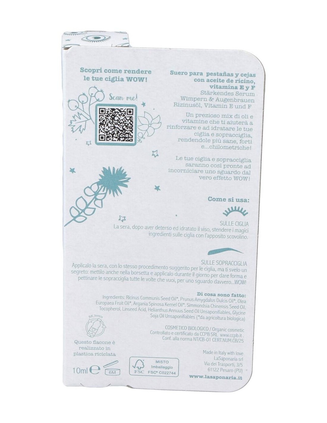 Serum Wow Fortalecedor Pestañas Y Cejas 10Ml. de La Saponaria