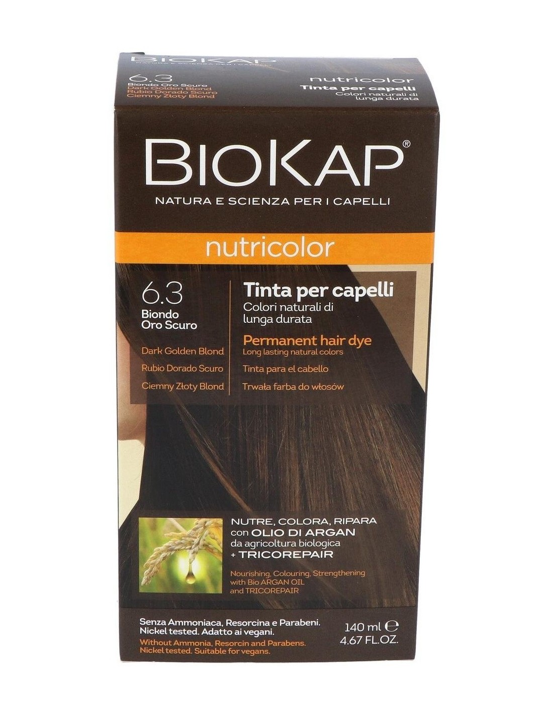 Nutricolor 6.3 Rubio Dorado Oscuro 140 ml de Biokap
