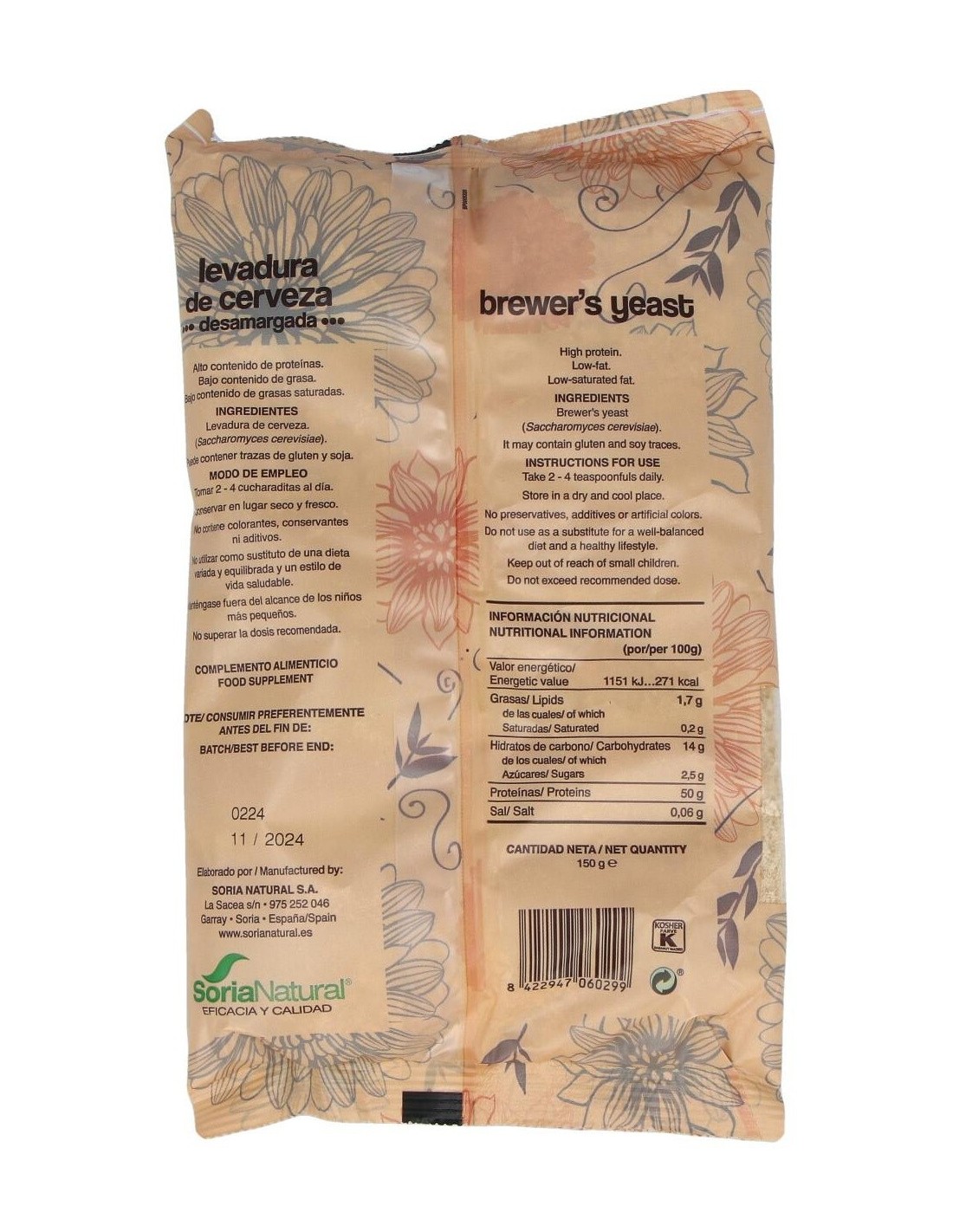 Levadura De Cerveza Desamargada 150Gr. de Soria Natural