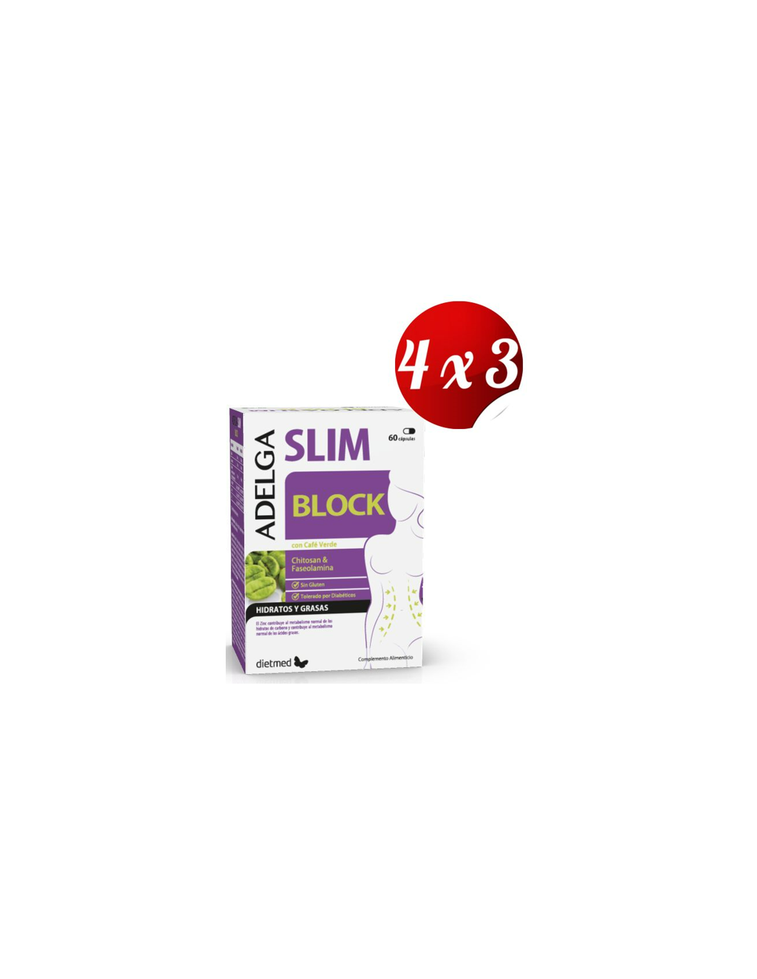 Pack 4x3 uds Adelgaslim Block 60Cap. de Dietmed