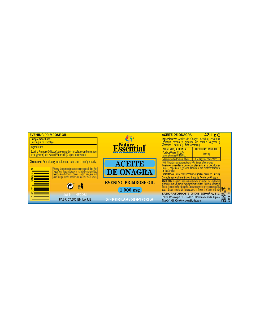 Aceite De Onagra 1000Mg. (10% Gla) 30Perlas de Nature Essential