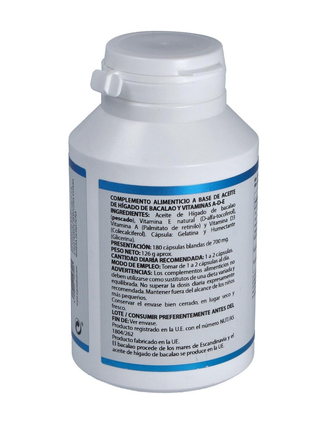 Aceite Higado De Bacalao Con Vit. A, D Y E 180Cap. de Equisalud