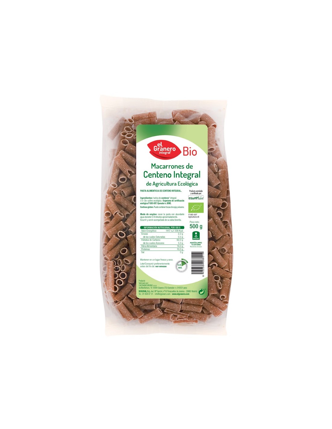 Macarrones De Centeno Integral Bio, 500 G de El Granero Inte