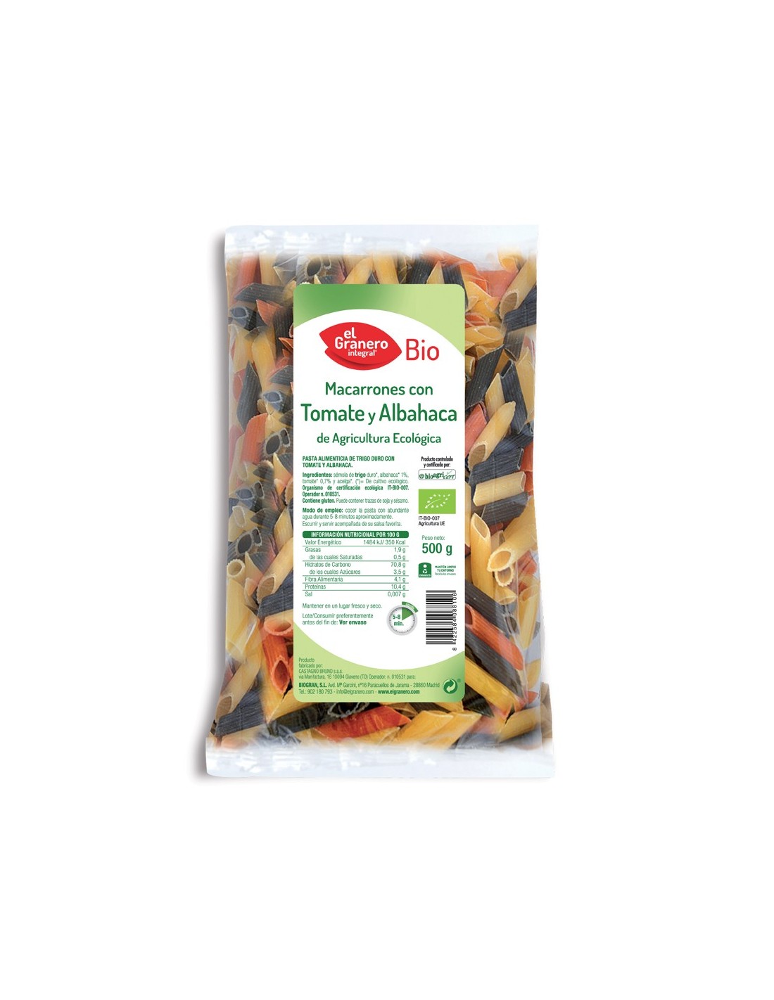 Macarrones Con Tomate Y Albahaca Bio, 500 G de El Granero In