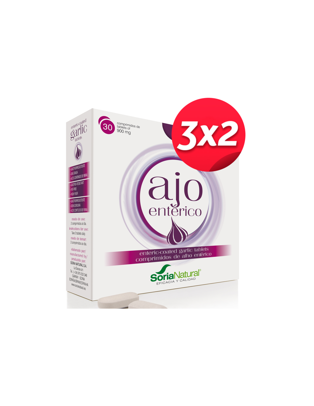 Pack 3X2 Ajo Enterico 30Comp. de Soria Natural