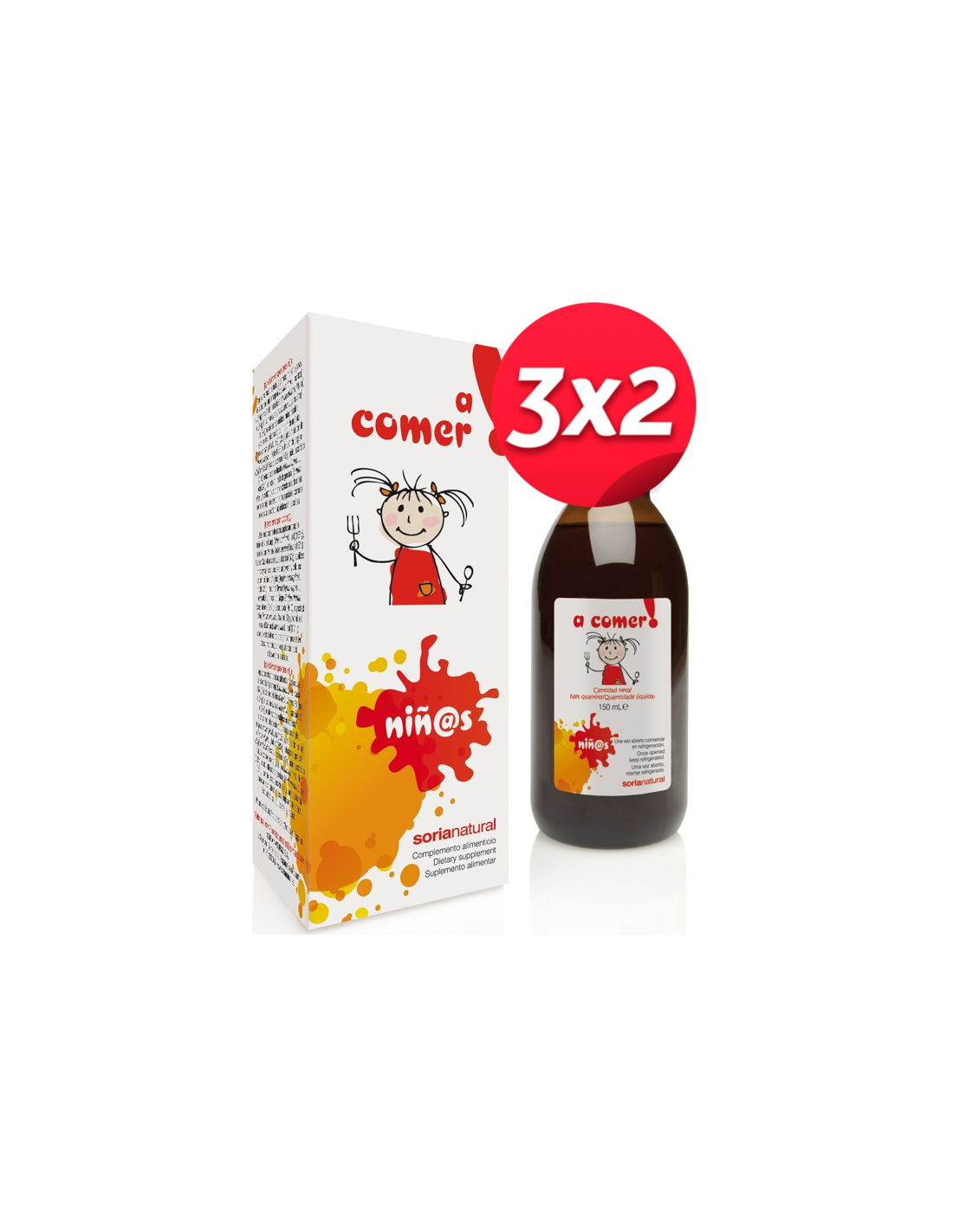 Pack 3X2 A Comer Niños Jarabe 150Ml. de Soria Natural.