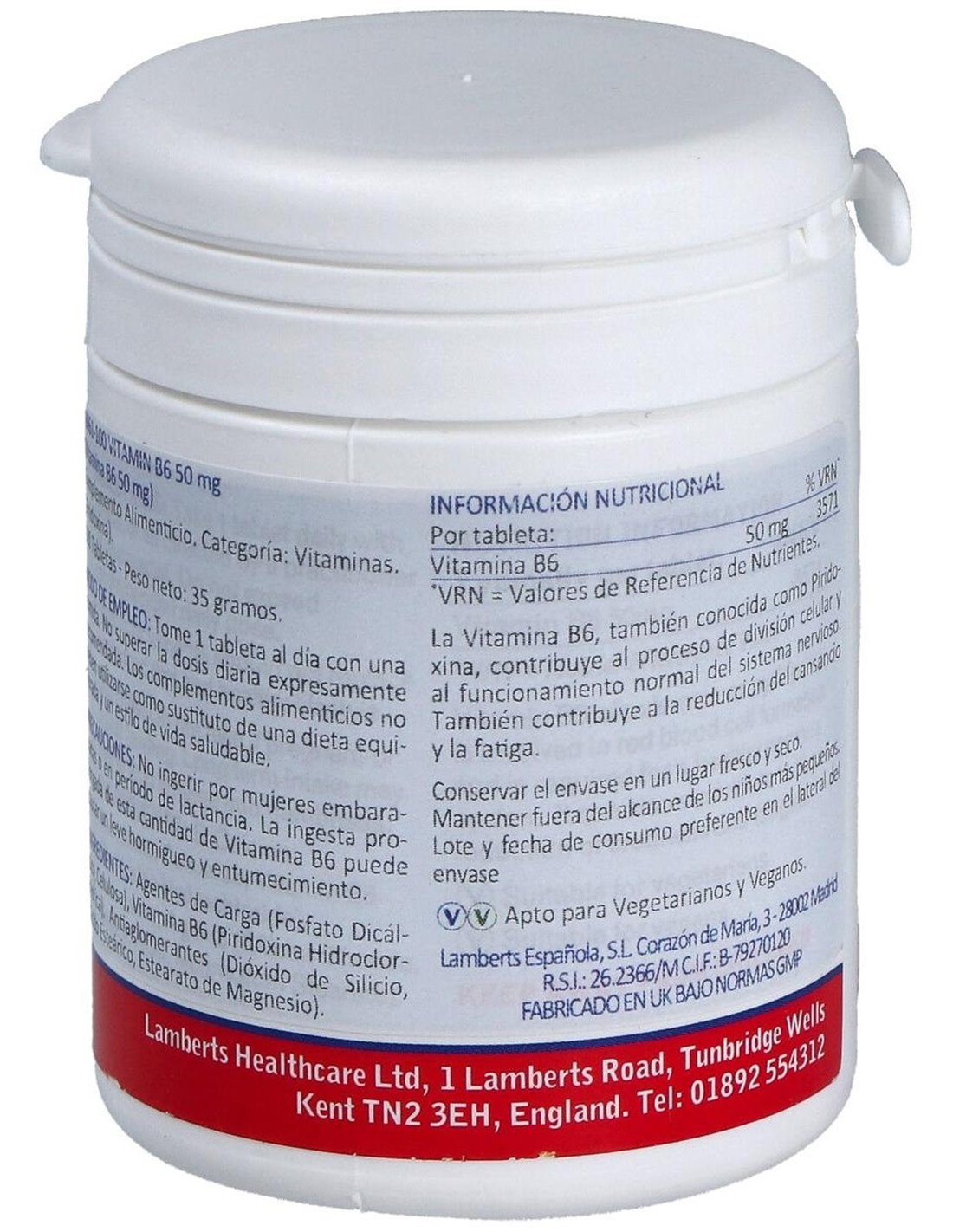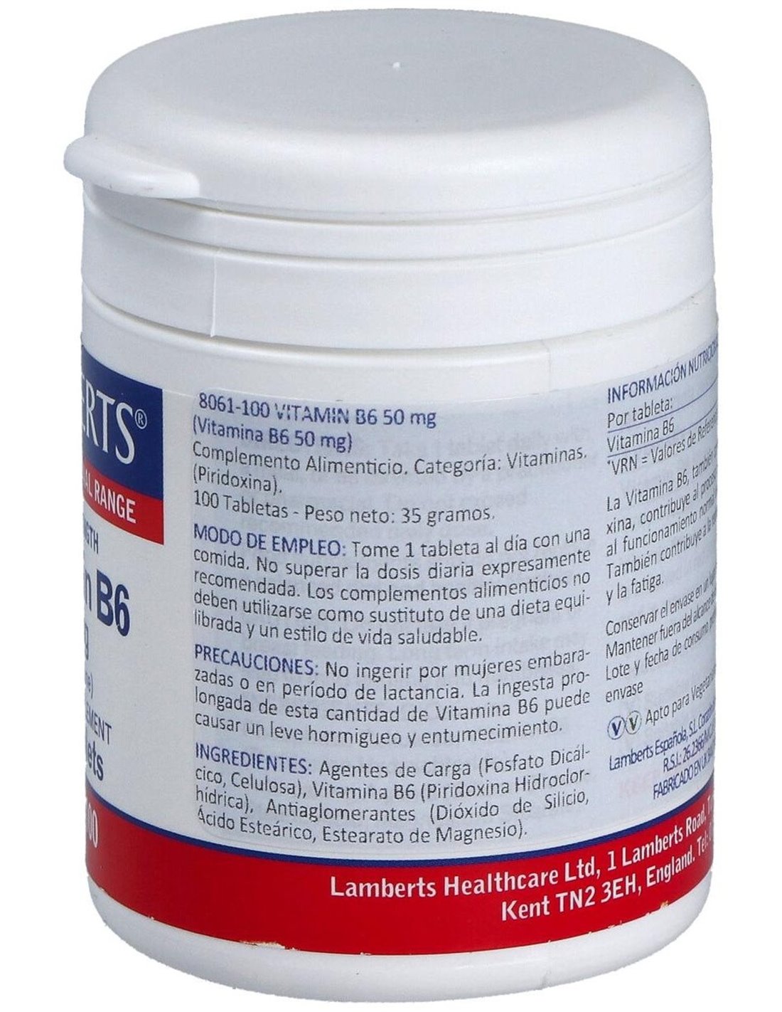 Vitamina B6 50 mg (Piridoxina) 100 Tabs. de Lamberts