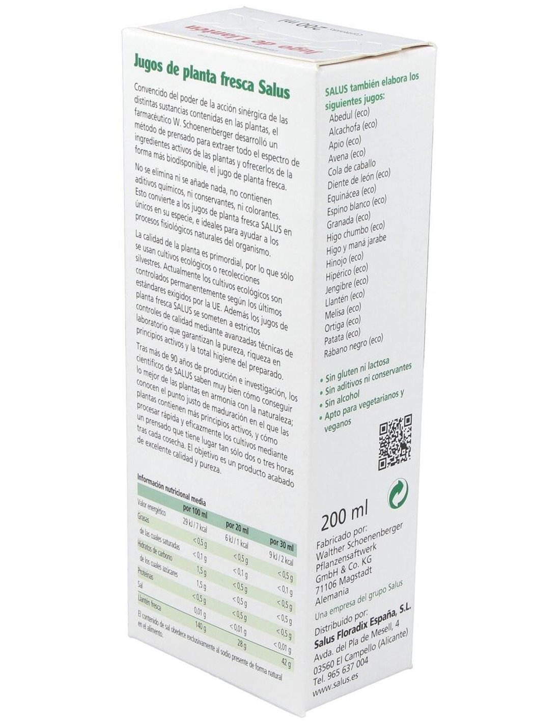 Jugo De Llanten 200Ml. Schoenenberger de Salus
