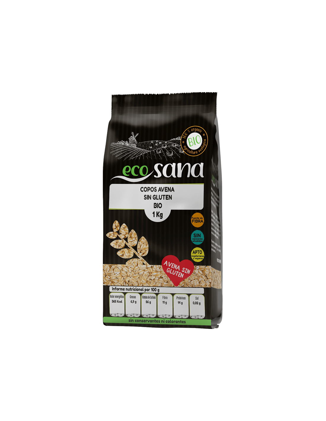 Copos Avena Fino Integral Sin Gluten Bio 1Kg Ecosana