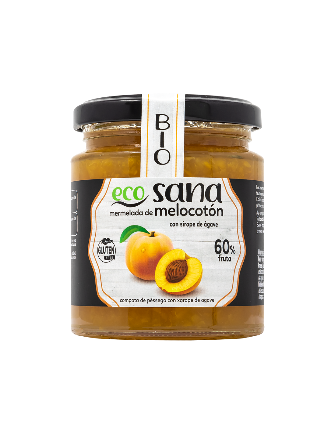 Mermelada Extra Melocoton S/Azucar Con Agave Sirope Bio 260G Ecosana
