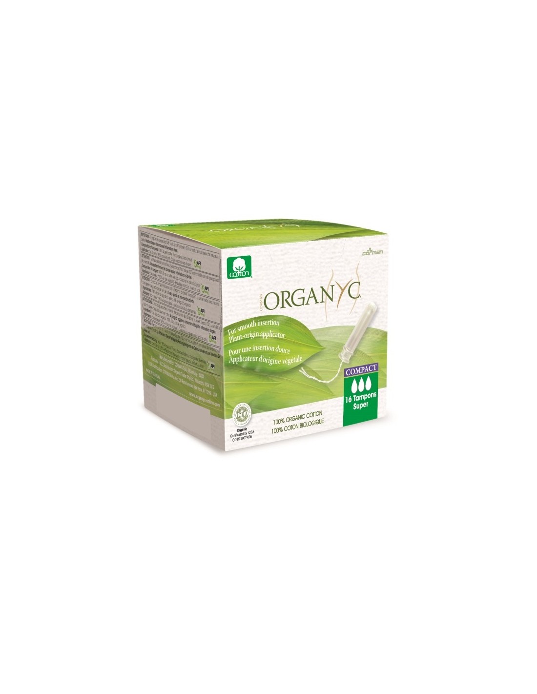 Tampón con aplicador compacto super, 100% algodón orgánico, 16ud de Organyc