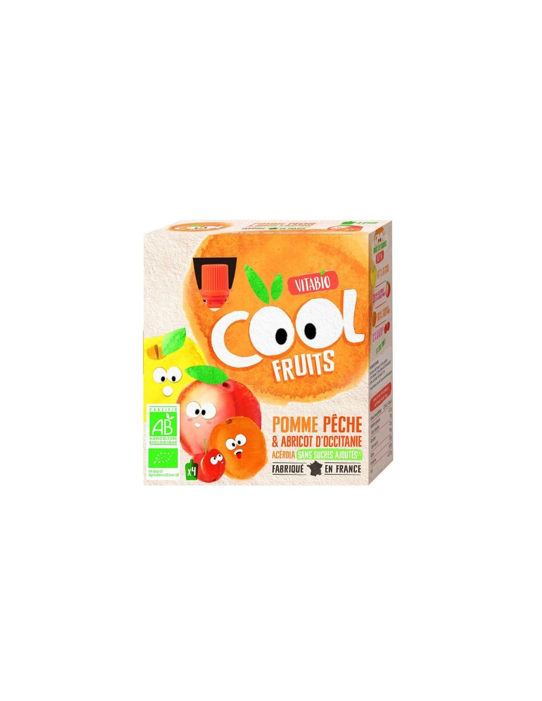 Vitabio - Cool Fruits Manzana Melocoton albaricoque 4 x 90 g de Baby Bio