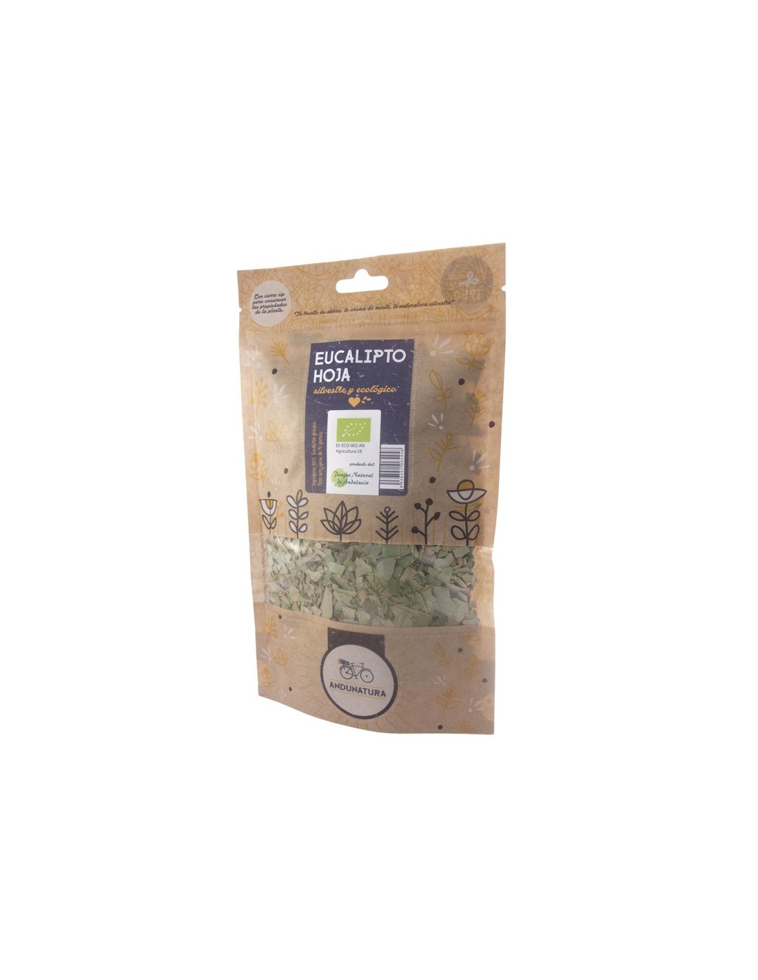 Eucalipto hoja bio y silvestre bolsa kraft 60 gr.Andunatura