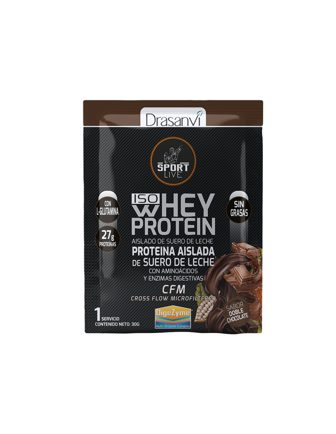 Monodosis Whey Protein Aislado Doble Chocolate 30G Sport Live Drasanvi