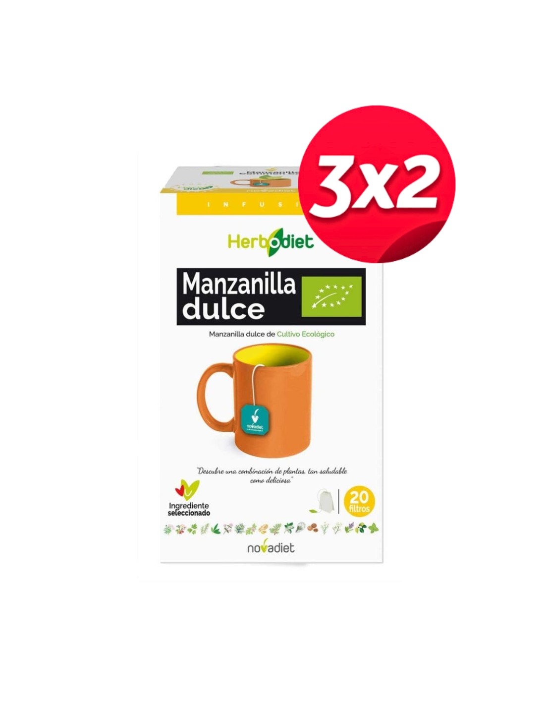 Pack 3x2 Herbodiet Manzanilla Eco Envase de 20 bolsitas filtro de 1,5 g. de Novadiet
