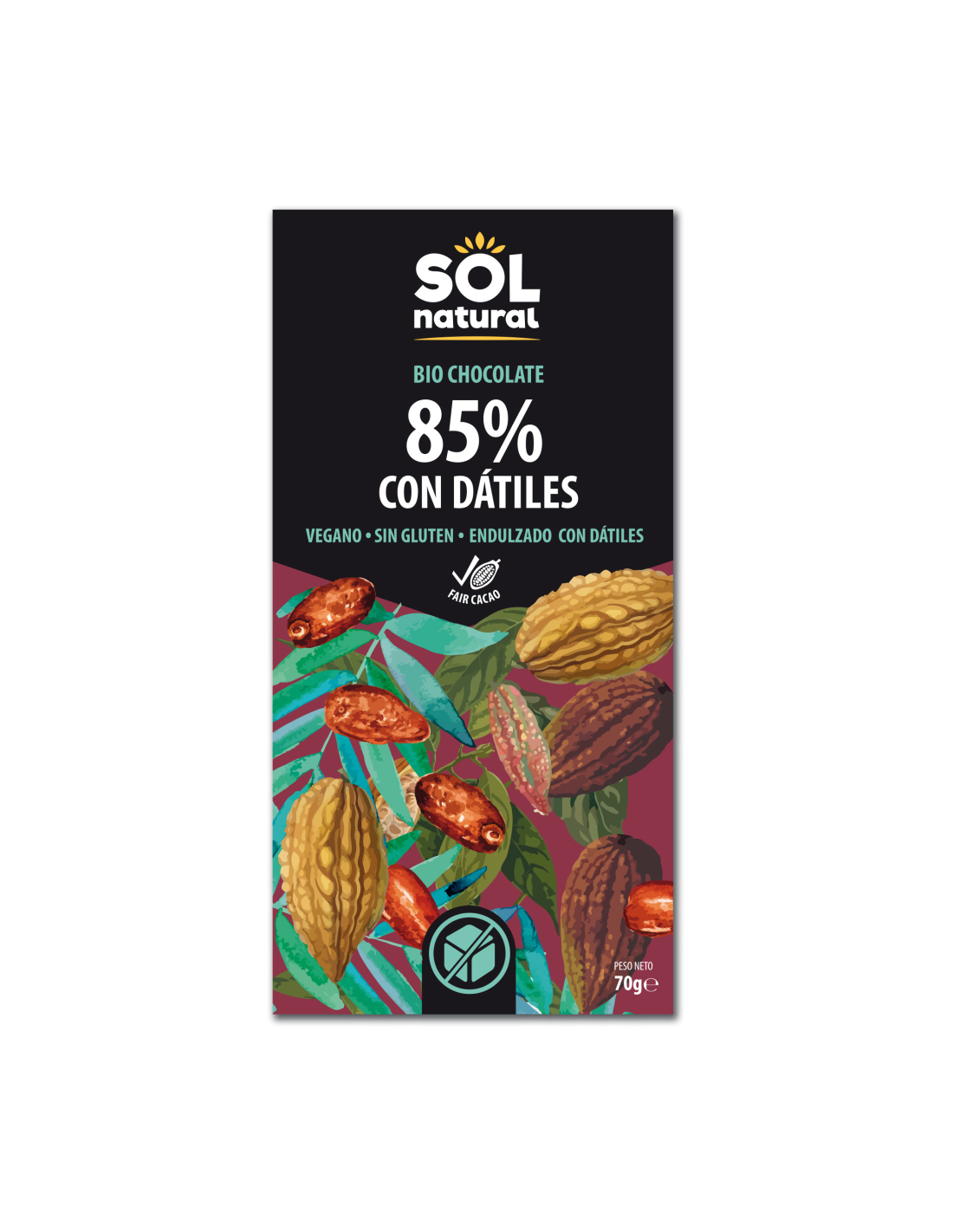 Tableta Chocolate Dark 85% Con Dátiles Bio 70 g de Solnatural