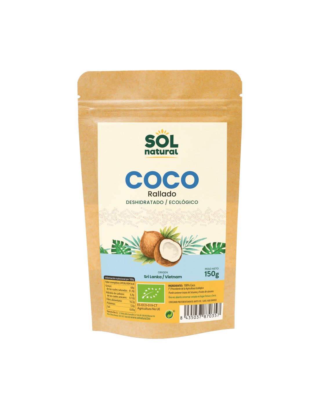 Pack 12 Uds. Coco Rallado Bio 150 g de Solnatural