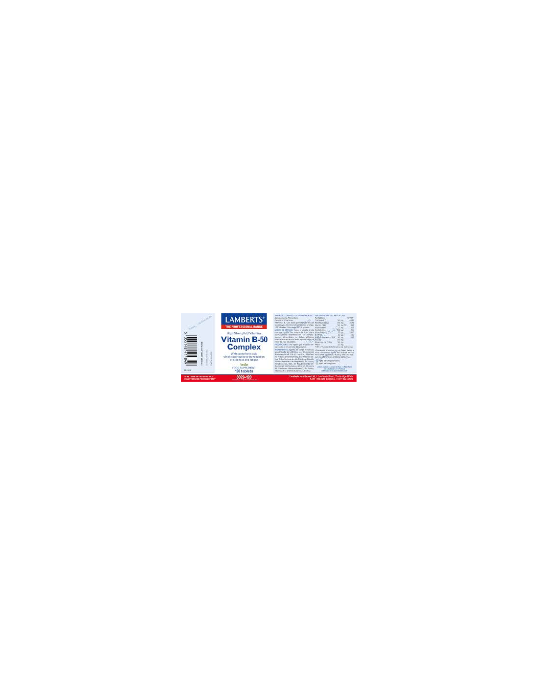 Pack 2 Uds. Complejo de Vitaminas B-50 120 Tabs. de Lamberts
