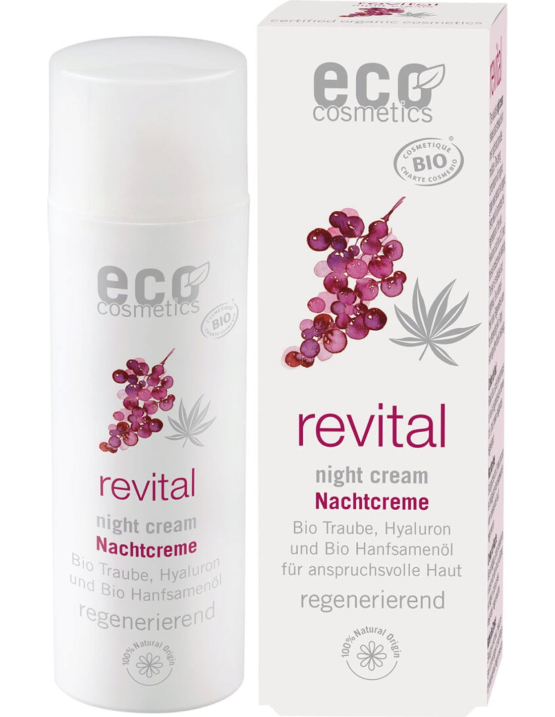 Crema noche con extracto de semilla de uva y cáñamo ecológico y ácido hialurónico Revital 50ml de Revital