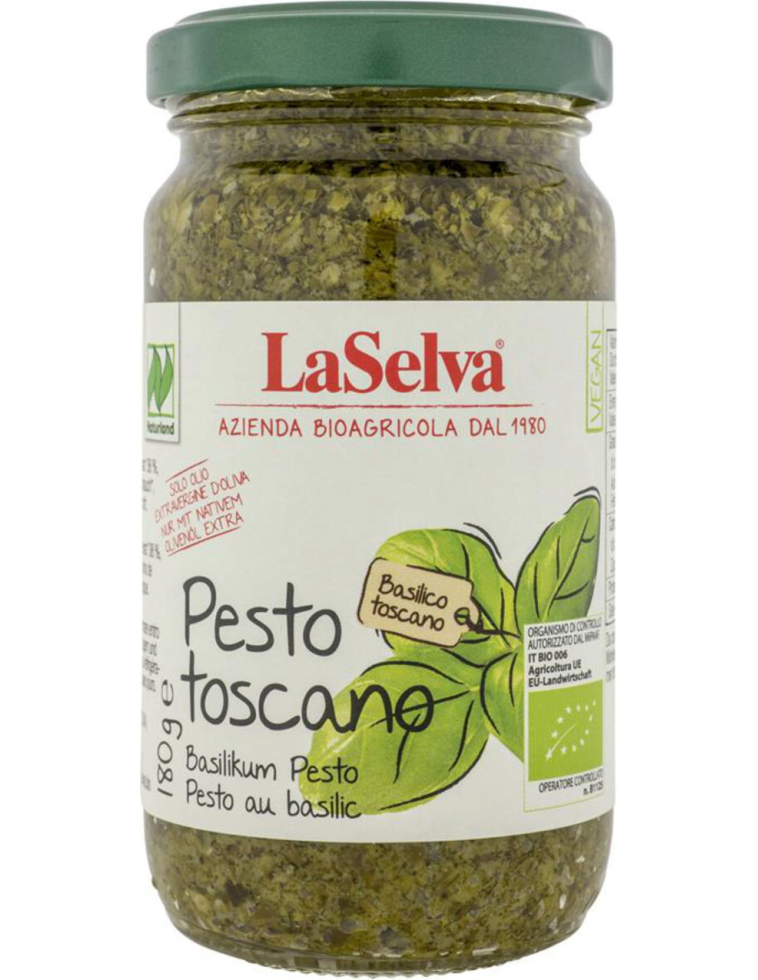 Pesto de albahaca (con ajo) toscano, 180g de Laselva