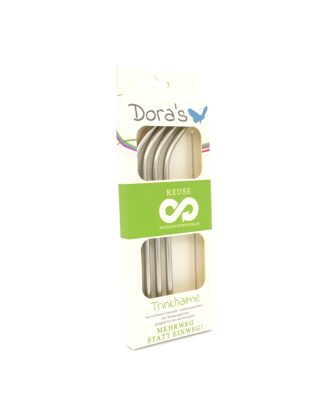 Pajitas inox - inclinadas, set de 4 con cepillo de Biodora