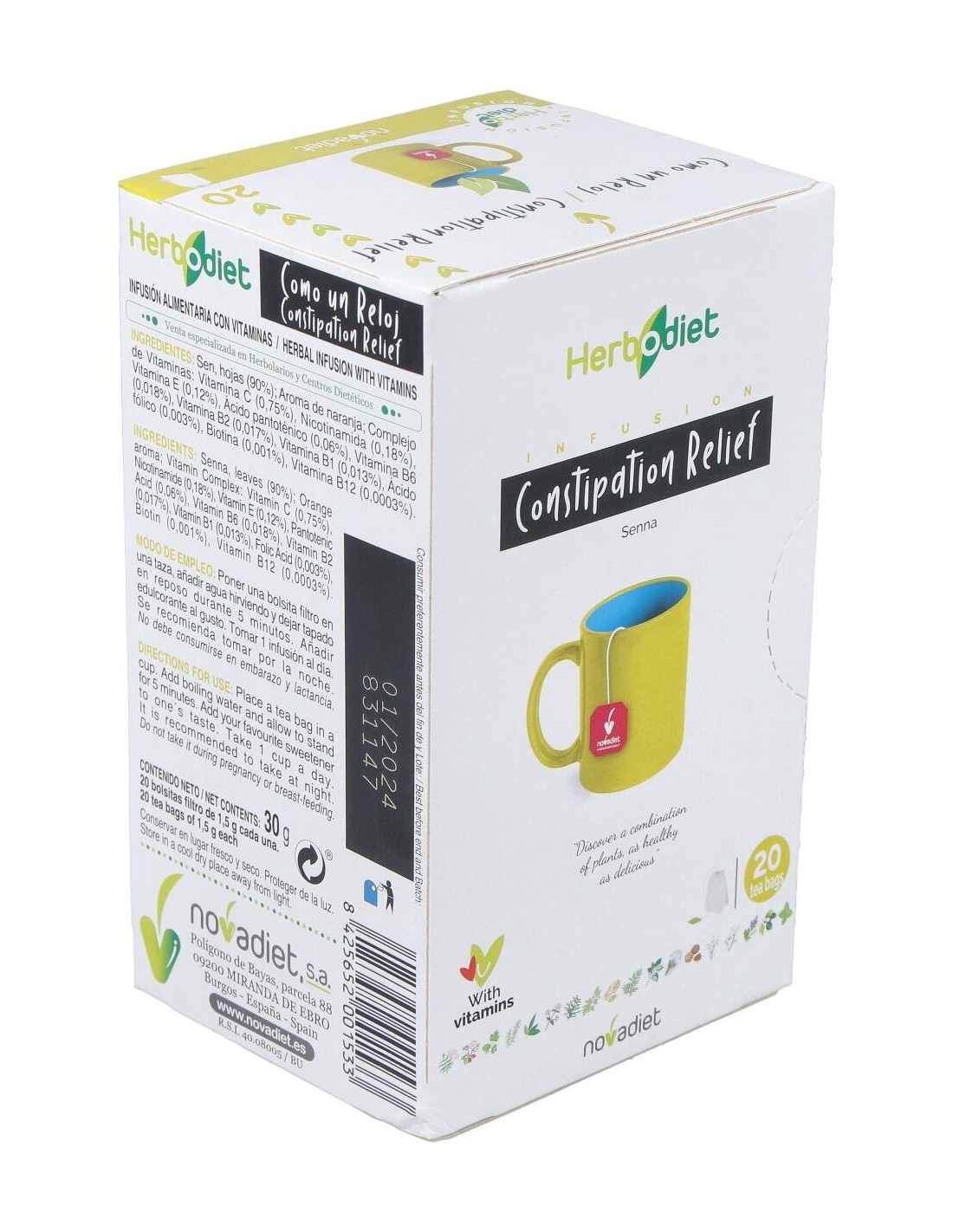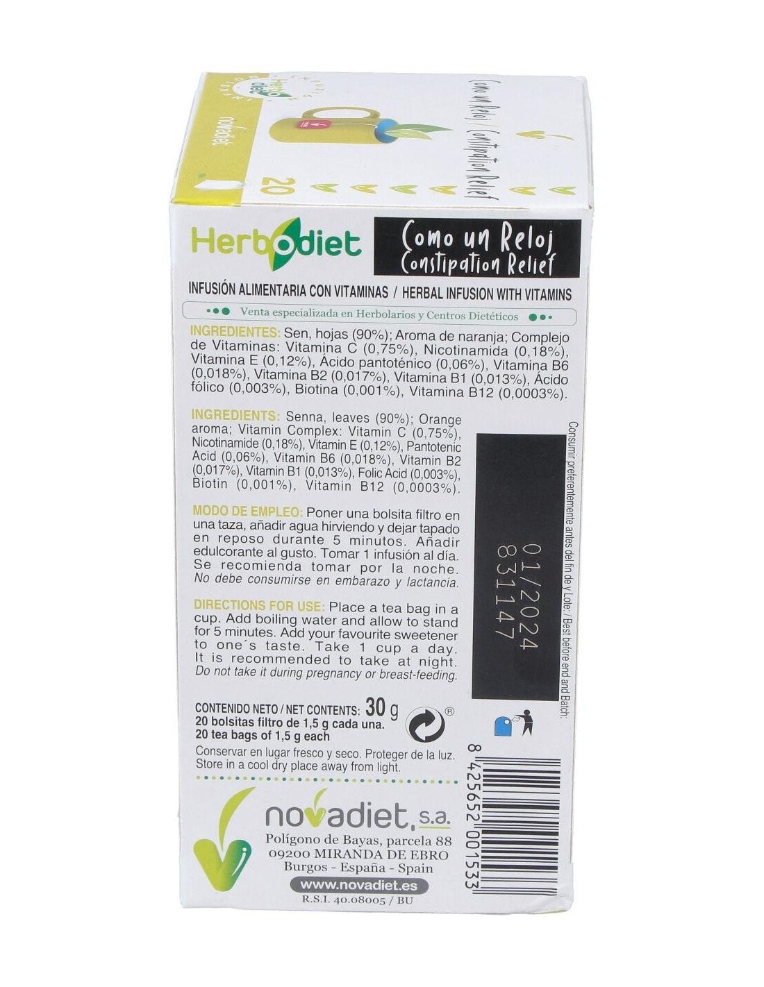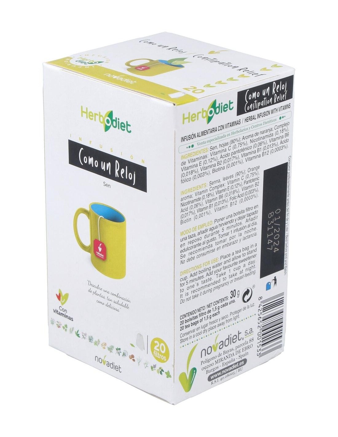 Herbodiet Como Un Reloj Envase de 20 bolsitas filtro de 1,5 g. de Novadiet