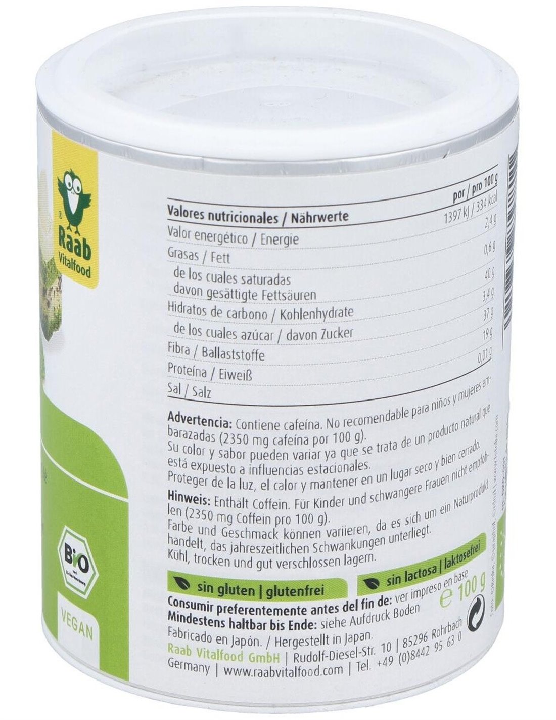 Té verde Matcha Bio cocina, 100g de Raab Vitalfood