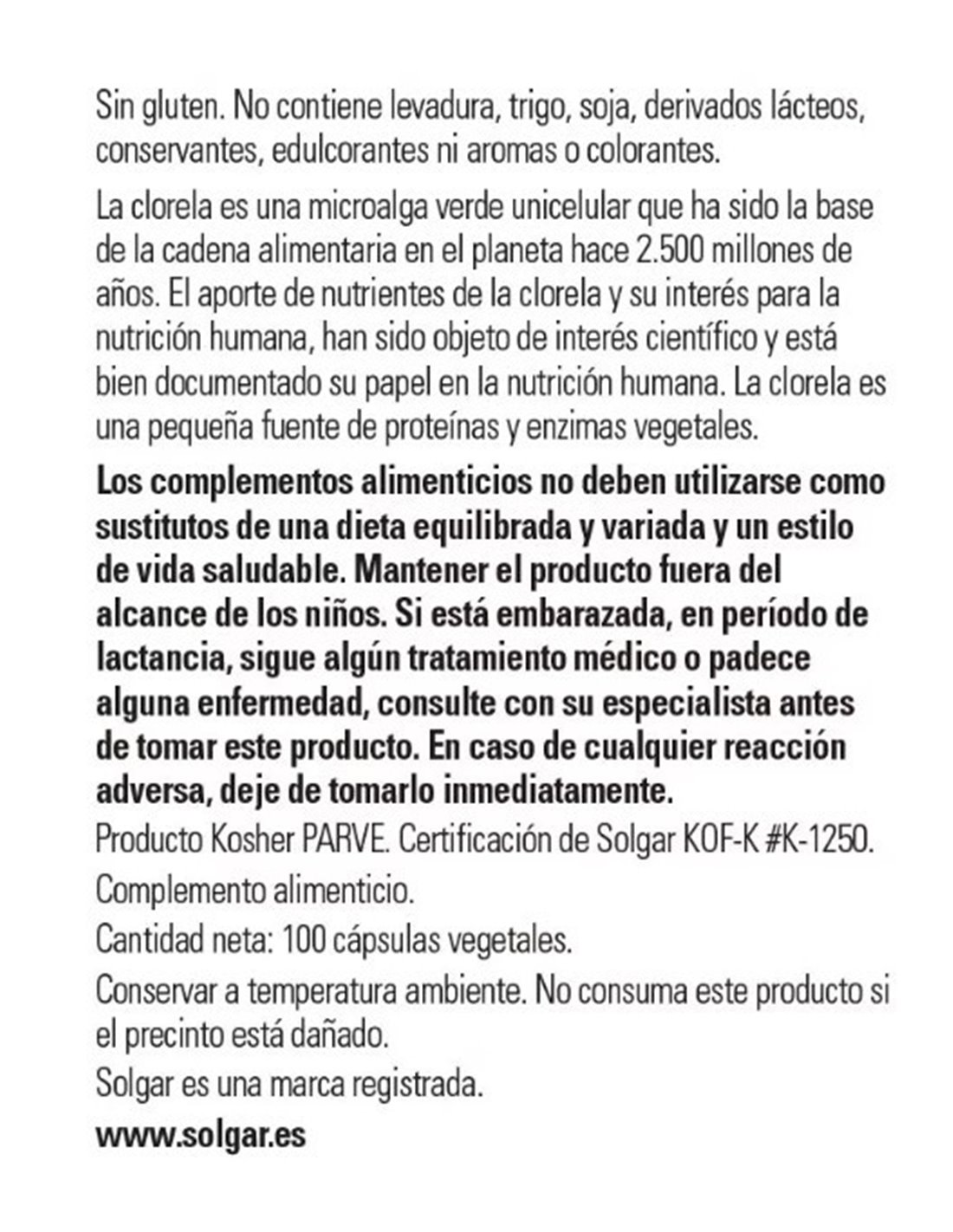 Chlorella (De Pared Celular Rota) 100Vegicaps de Solgar