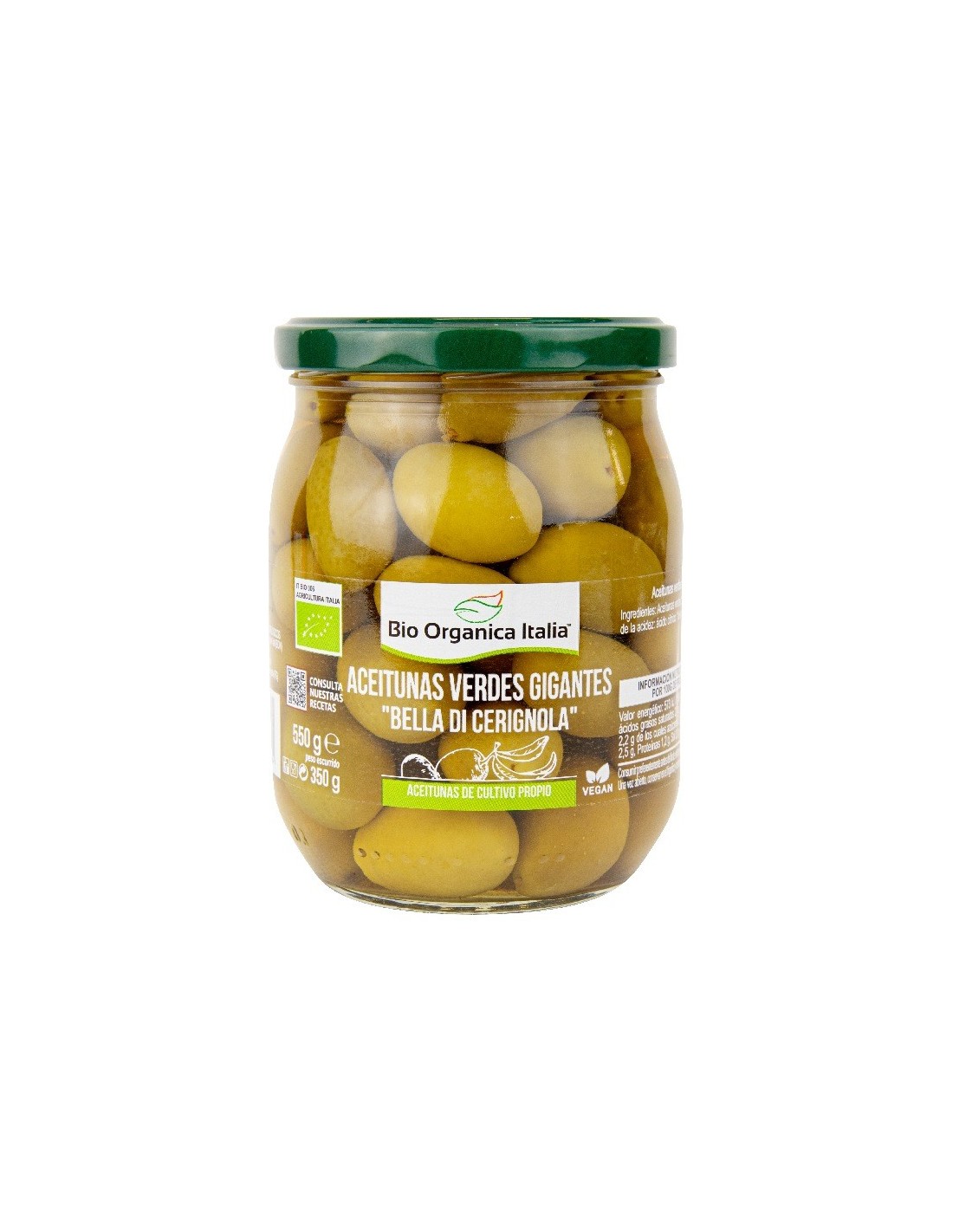 Aceituna Verde Gigante 550Gr. Bio de Bio Organica Italia